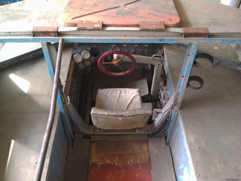 Интерес помимо движителя представляет управление. При наклоне руля-штурвала вперед вездеход ускоряется, назад-тормозит. Поворот осуществляется блокировкой бортового фрикциона.