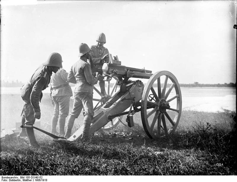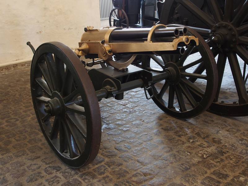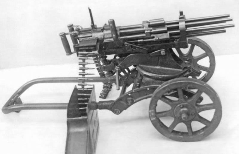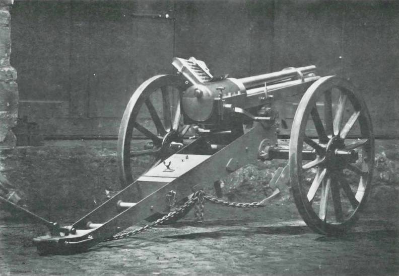 Собственная компания Р. Гатлинга разрабатывала и выпускала новое оружие в разных калибрах, но речь шла только о пулеметах, тогда как артиллерийская сфера оставалась неохваченной. Это упущение в 1872 г. исправила французская компания Hotchkiss et Cie. Ее инженеры во главе с Бенджамином Гочкисом, видя успехи американских пулеметов, разработали свой вариант малокалиберной пушки с вращающимся блоком стволов.