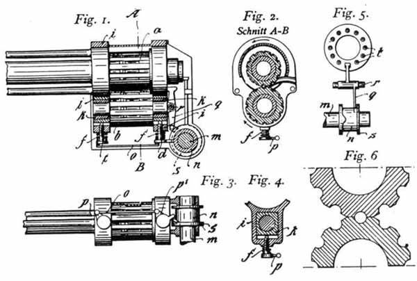 Вращаясь от внешнего привода, роторы должны были затягивать патронную ленту внутрь оружия. Очередной патрон подводился в центральное положение и оказывался зажат в «разъемном патроннике», после чего следовал выстрел. Гильза прямо в ленте выдавалась на другую сторону оружия. По расчетам, такая схема позволяла получить скорострельность до 7200 выстр./мин.