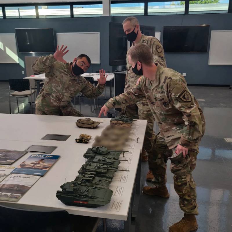 К слову, анализ существующих танков, в том российского «бутафорского танка» Т-14 «Армата», с целью определения облика будущей боевой машины американцы проводили ещё в 2020 году, наметив на 2021 год проработку характеристик будущего танка с сокращённым экипажем. На приложенном ниже фото как раз запечатлены, но «заблюрены» его модели в разных исполнениях в количестве четырёх единиц.