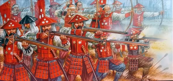 Даже в Японии, в их японское Средневековье, лук почти (за небольшими исключениями) исчезает из арсенала пеших воинов, сохраняясь у всадников. А у пеших асигару основным оружием становится, как в Европе, длинная пика и аркебуза-тэппо.