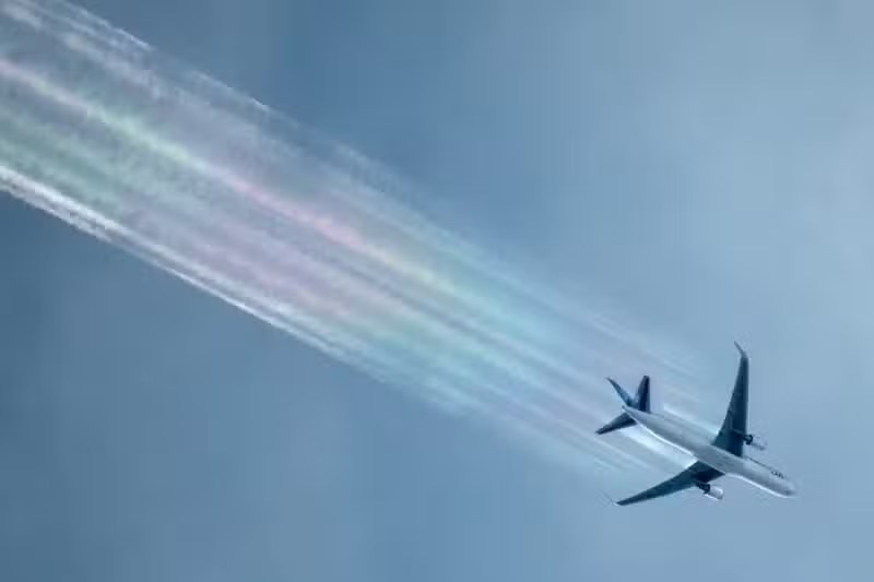 Хотя большинство конденсационных(инверсионных) следов, создаваемых самолетами, белые, иногда можно увидеть их и в радужной раскраске.