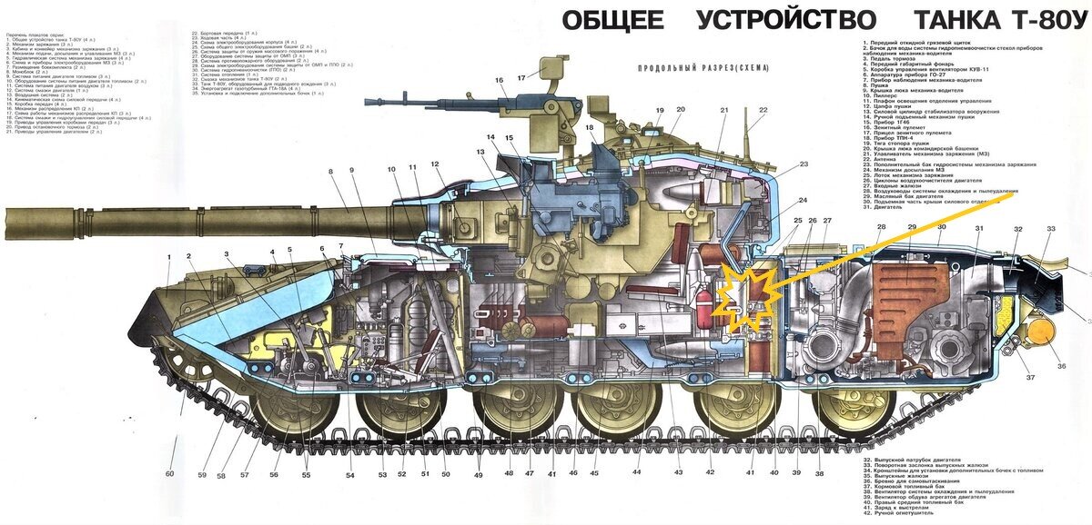 Разумеется, детонирует не двигатель и тем более не коробка передачя. Над двигателем топливных баков нет. Следовательно, взрываются не пары топлива… Но что тогда? Хороший вопрос, и чтобы получить ответ на него, нужно взглянуть на компоновку танков советской школы.