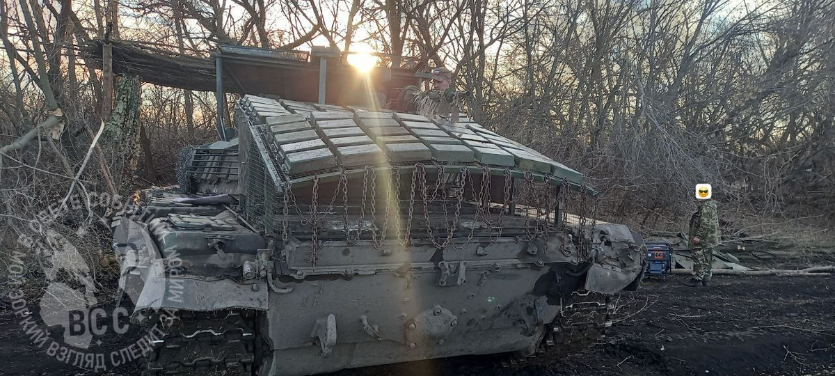 Некоторые экипажи и ремонтные бригады жертвуют сектором поворота башни для защиты двигателя, установив на него индивидуальный козырёк(«мангал») с сеткой, а порой и динамической защитой. Подобная защита действительно способна затруднить операторам дронов поражение танка, приводящее к детонации боекомплекта. Но стоит помнить, что удар дроном в крышу МТО вовсе не панацея — с таким же успехом к взрыву БК может привести любое попадание дрона в район подбашенного погона. То есть, если дрон попадет в подбашенный погон российского танка под углом больше 45 градусов к вертикали, хоть в боковую, хоть в лобовую проекцию, это гарантировано приведет к тому, что кумулятивная струя пройдет через «карусель» БК и вызовет её возгорание или взрыв.
