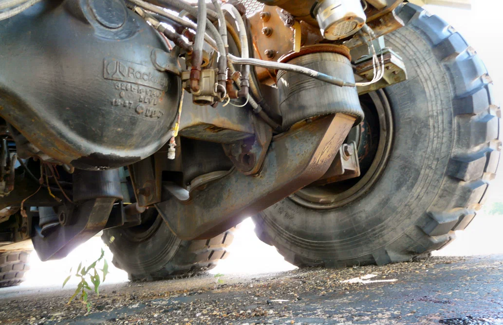 Что же касается прицепа, то у него тоже были ведущие колëса. Но их привод был реализован, пожалуй, по наиболее сложному сценарию из всех возможных. Так через вал отбора мощности коробки во вращение приводился гидронасос. Он качал масло по длиннющим рукавам через всю длину полуприцепа. Сами же колëса вращались за счёт гидромоторов. И разумеется эта система всегда ломалась.