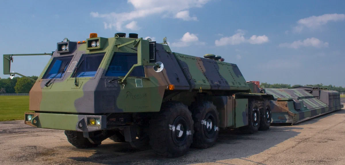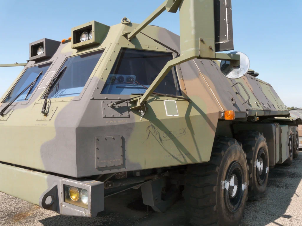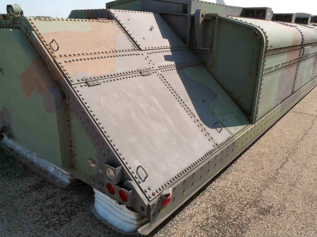 И то, что вы здесь видите, это экспериментальный мобильный пусковой комплекс «Phoenix»для малой межконтинентальной баллистической ракеты Midgetman. Он был построен в 1988 году, затем работал в тестовом режиме до 1991 года, после чего в 1992 году его списали за ненадобностью.