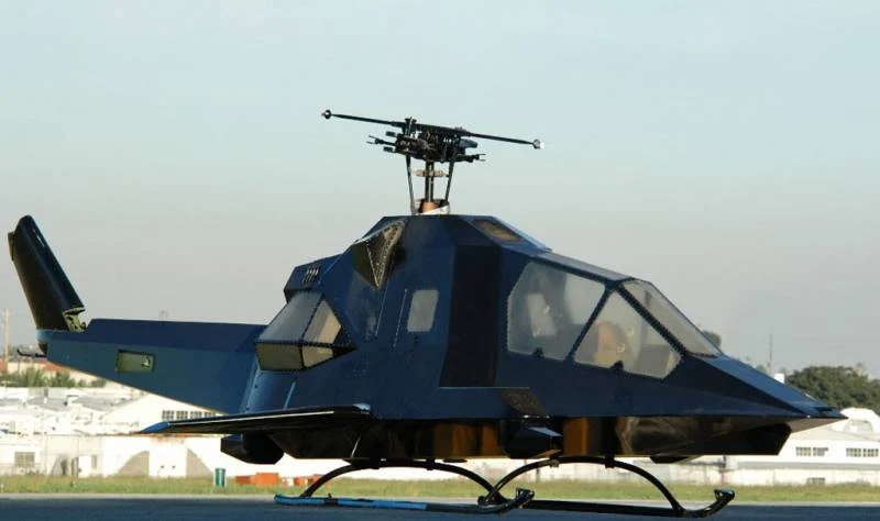 Одной из основных задач проекта значилось получение максимально возможной огневой мощи, и ее решили нетривиальным образом. По бокам от кабины пилотов, на уровне днища, предусмотрели пару дистанционно управляемых установок под стрелковое оружие. Еще два таких устройства расположили рядом с хвостовой балкой. На установках опытного образца были смонтированы шестиствольные пулеметы винтовочного калибра. Компания-разработчик утверждала, что вместо них можно использовать крупнокалиберные пулеметы или даже автоматические пушки калибром 20 мм.