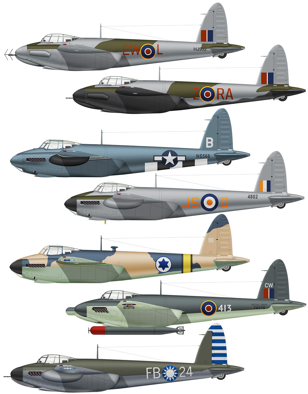 А в серийных поставках бритты отказали, сказав мол самим не хватает, и это, скорее всего таки правда. В свою очередь, с 1941 по 1948 год (да «Москито» продолжали делать и после войны) в Англии, Канаде и Австралии было построено 7780 «комаров» в сорока четырех бомбардировочных, разведывательных, истребительных и учебных модификациях, что делает эту машину вторым по массовости английским двухмоторным бомбардировщиком после «Веллингтона». И при этом — самым трудносбиваемым. За счет высокой скорости, доходящей до 670 км/ч, «Москито» был почти неуязвим для немецких истребителей, за исключением реактивных. Поэтому у него был самый низкий уровень боевых потерь среди британских бомбардировщиков и истребителей-бомбардировщиков. В период с июня по сентябрь 1943 года средний уровень потерь для Mosquito составлял 2,3% за вылет (по сравнению с 3,5% для Lancaster и 5,4% для Halifax), что означает, что в среднем самолет совершал около 43 вылетов до потери.На более поздних этапах войны и при использовании в качестве ночных истребителей, уровень потерь был еще ниже, около 0,7% за вылет, что соответствует примерно 143 вылетам на одну потерю.