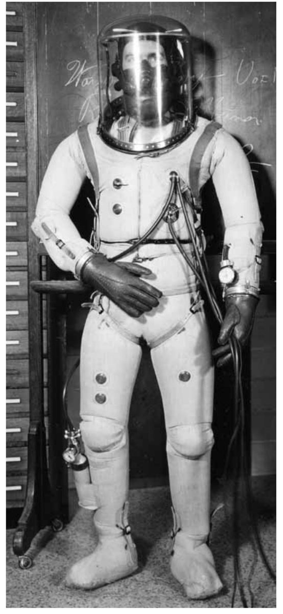 Впервые применить кислородную маску в одного из своих скафандров, разработанного во время второй мировой войны, предложил профессор авиационной техники из университета Миннесоты Иоган Акерман (John D. Akerman).