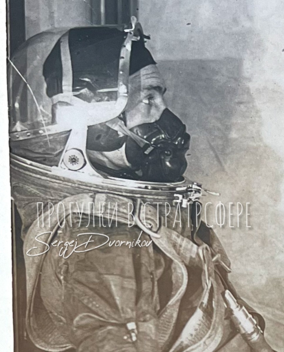 Особенность конструкции его скафандра заключалась в двухконтурной вентиляции. Первый контур вентиляции обеспечивал избыточное давление внутри скафандра при помощи обычной воздушной смеси с содержанием 21% кислорода, а второй – дыхательный контур подавал чистый кислород непосредственно на вдох через носо-ротовую маску, установленную внутри шлема.