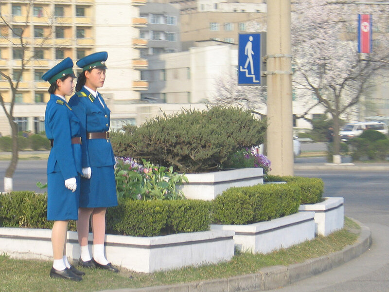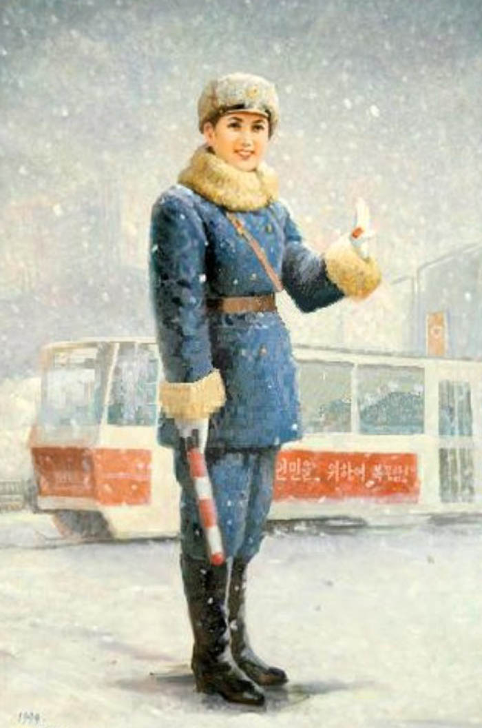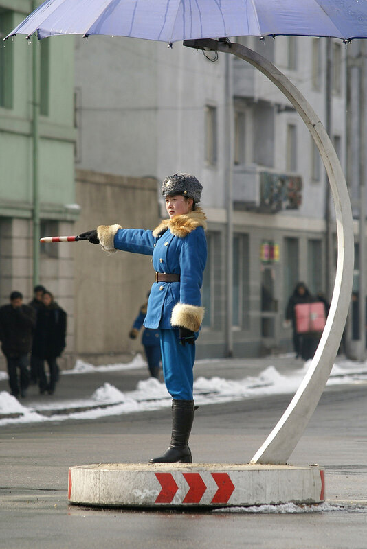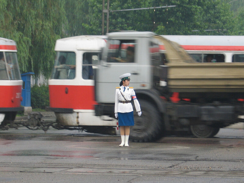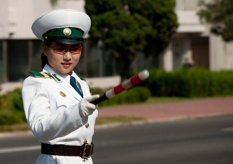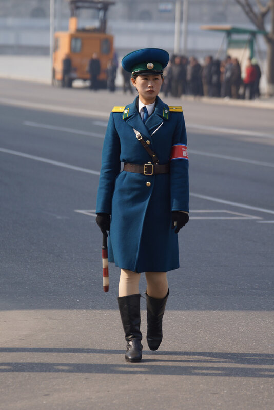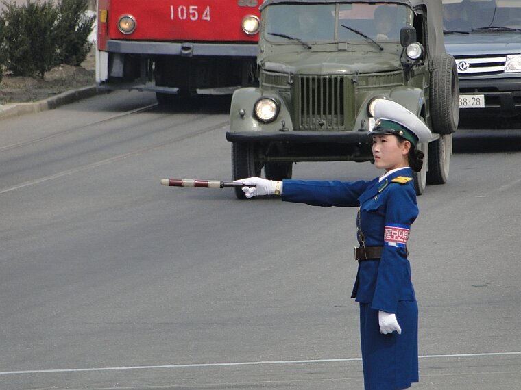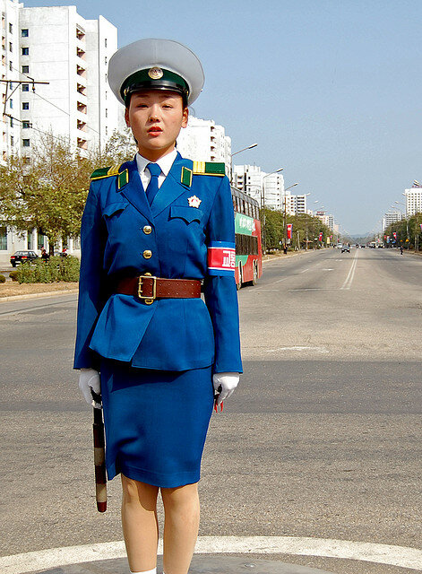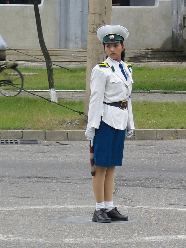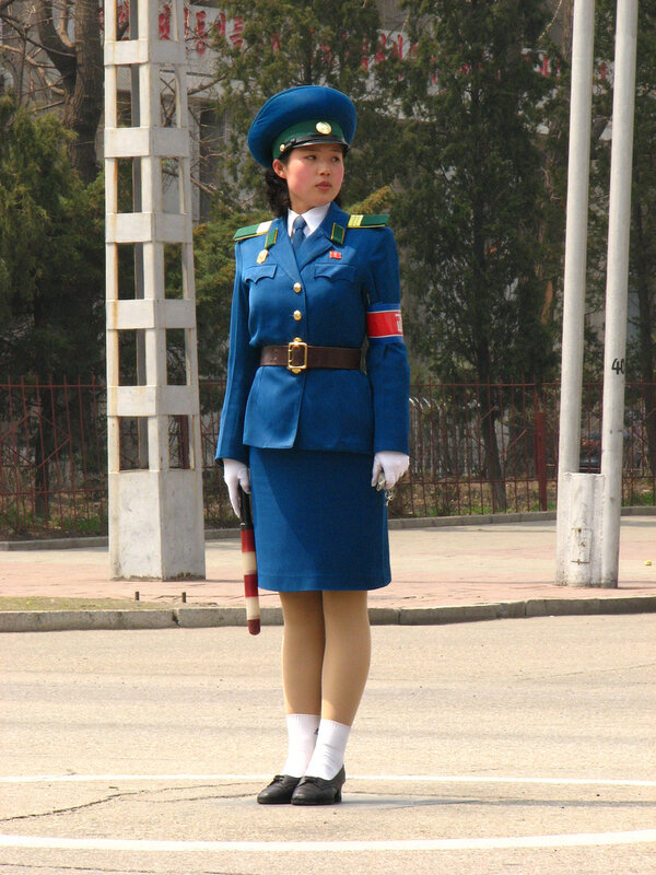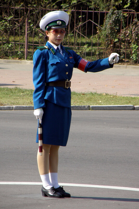 Девушки-полицейские появились на улицах Пхеньяна ещё в 80-х годах, когда автомобильное движение в городе было крайне ограниченным(впрочем, сейчас оно тоже не особо оживленное). Красавицы не столько регулируют дорожное движение сколько являются своеобразным украшением столицы. Всего в Пхеньяне 300 регулировщиц и на одно место приходится примерно 1000(!) претенденток. Поэтому, можете себе представить как сложно попасть на эту должность. В возрасте 26 лет девушек принудительно отправляю на пенсию — считается, что в этом возрасте пора устраивать личную жизнь.