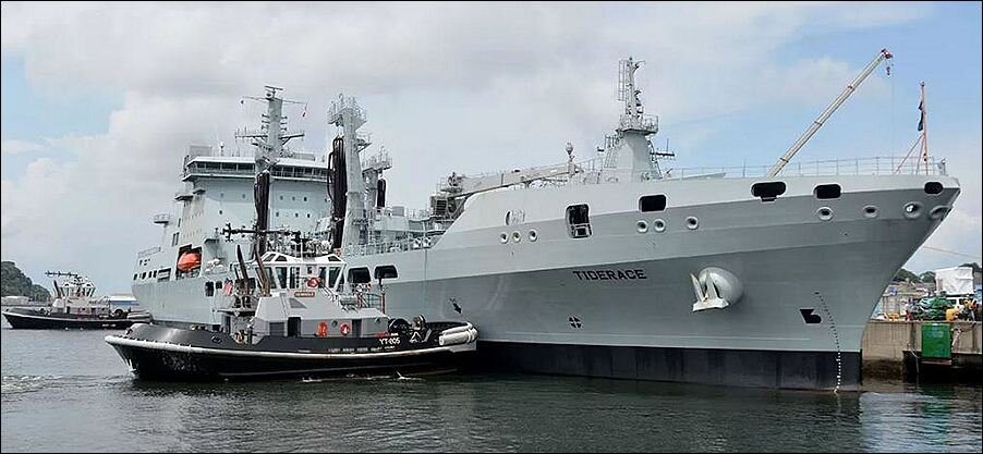 В боевых действиях корабельная авиагруппа потребляет значительное количество авиационного топлива. Даже если авианосец атомный, его должен сопровождать танкер для пополнения запасов этого топлива в море через определенные промежутки времени. Так что, если все равно приходится взаимодействовать со вспомогательным танкером, то заправить заодно и сам авианосец не составляет большого труда. Корабли охранения, которые почти всегда будут сопровождать авианосец, также имеют обычные двигатели, поэтому авианосец с ядерным двигателем не устраняет необходимость в танкерах. 4 судна снабжения типа Tide, которые вскоре войдут в состав британского вспомогательного флота, смогут пополнять авианосное соединение авиатопливом и дизельным топливом одновременно. На снимке один из таких танкеров: