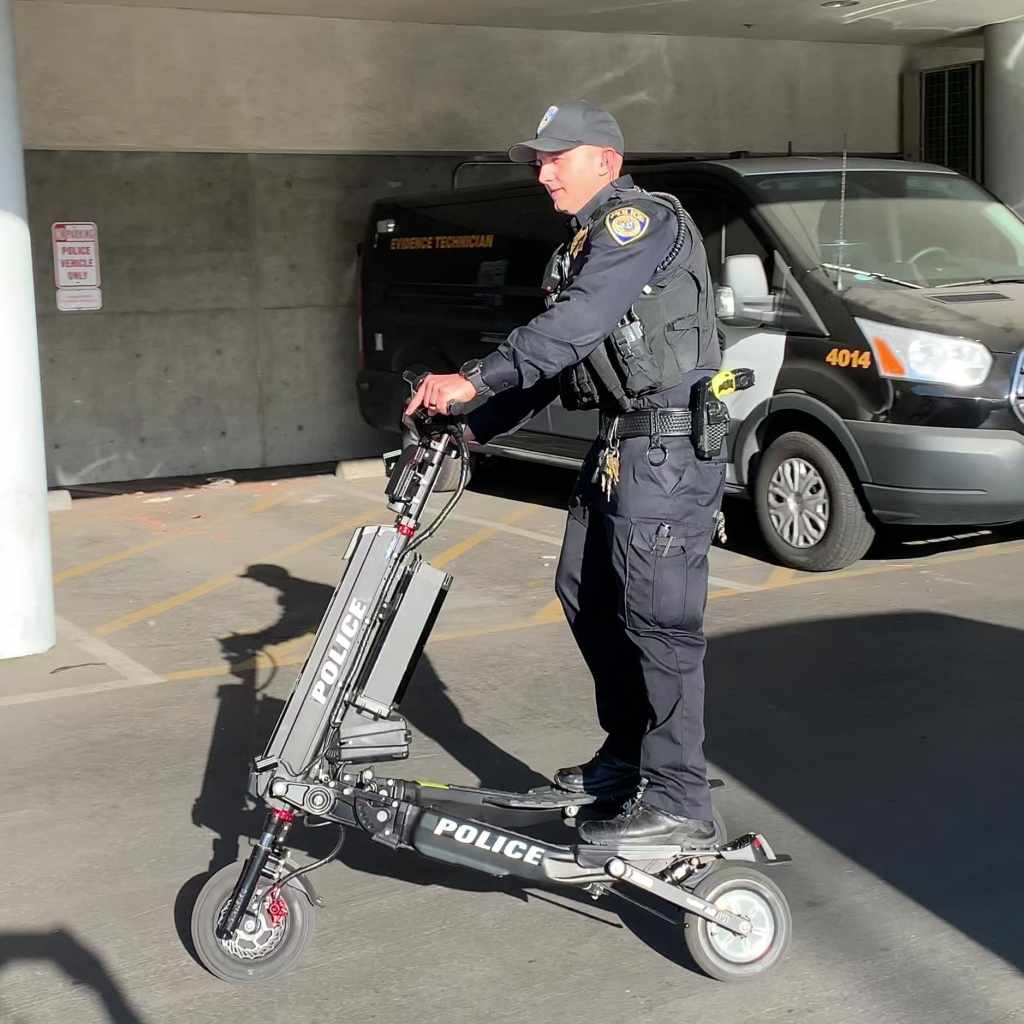 Сейчас американские полицейские во многих городах уже использую патрульные электросамокаты, и весьма ими довольны. Это быстрый, бесшумный и экологичный вид транспорта, он превосходит по этим качествам служебные автомобили, а в плане мобильности в условиях тесноты дворов, узких проездов, а так же в условиях пересечённой местности, и даже в помещении не имеют себе равных.