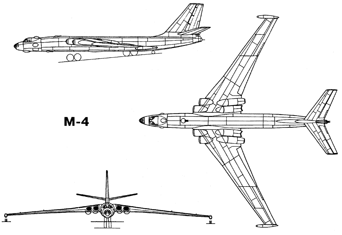 Это был самый сложный и наиболее совершенный бомбардировщик, разработанный в СССР на тот момент. Он обладал уникальной для своего класса максимальной скоростью — 947 км/ч (для сравнения, у его американского ровесника В-52 «Стратофортресс» — 819 км/ч). Авиаконструктор В.М. Мясищев применил в М-4 множество новых технических решений.