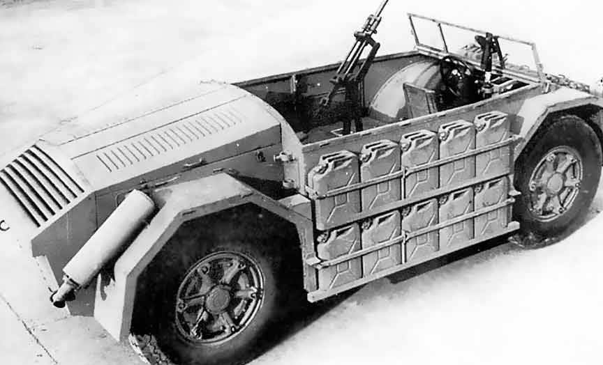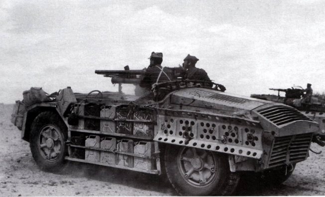Несколько необычный, но очень удачный разведывательный автомобиль AS 42 «Sahariana» был разработан на базе бронеавтомобиля АВ 41 с учетом усовершенствований, появившихся на АВ 43. Он представлял собой открытое, легко бронированное шасси бронемашины АВ 41 и первоначально предназначался для проведения дальних разведывательных рейдов в Северной Африке, однако этой машине пришлось выполнять задачи по преследованию диверсионных отрядов, а так же участвовать в боевых операциях за линией фронта. Машина не имела штатного вооружения, но в ее боевом отделении можно было устанавливать самые различные огневые средства, два-три 8-мм пулемета «Бреда 38», 13,2-мм крупнокалиберный пулемет, 20-мм автоматическую пушку «Бреда 35», 20-мм противотанковую пушку «Солотурн», 37,2-мм пушку 37/40 и наконец, немецкую 37-мм противотанковую пушку Рак 35/36.