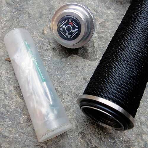 Рукоятка круглого сечения изготавливается из алюминия и обматывается прочным парашютным шнуром, выдерживающим вес до 60 кг. Внутри рукоятки имеется полость, в которую могут быть помещены предметы НАЗ (небольшой скелетный нож, спички в водонепроницаемом пакете, рыболовные крючки, игла). Полость рукоятки герметично закрывается резьбовой пробкой (в ней размещен миниатюрный компас), выполняющей также функцию навершия.