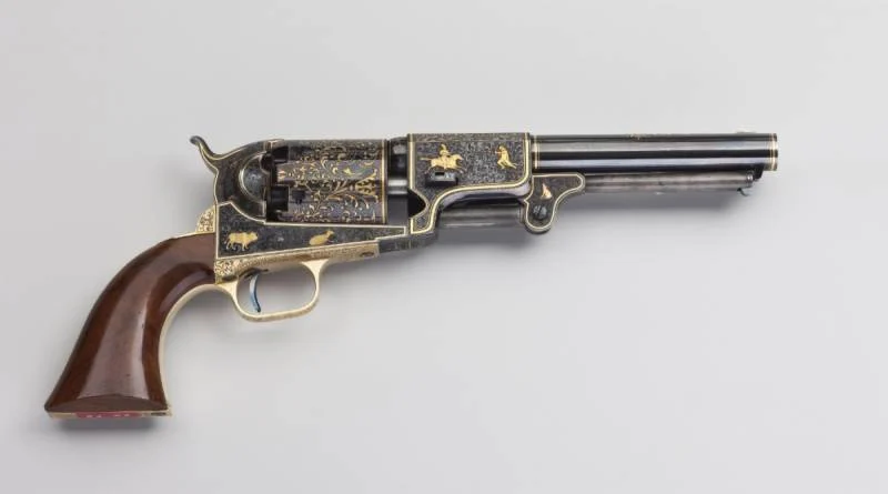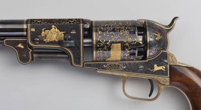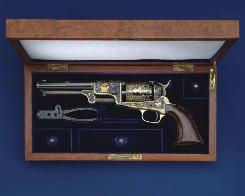 Тут Кольту помогло ещё одно обстоятельство: в Америку переехало множество искусных и опытных немецких граверов. Помимо украшения стандартных моделей, их руками были созданы и некоторые из самых роскошных и амбициозных кольтовских револьверов, обильно инкрустированных золотом, предназначенных для вручения главам государств.
