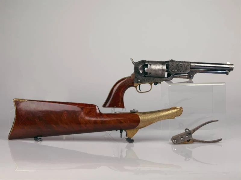 В этом году началась Крымская война, в которой россия столкнулась с Турцией и ее союзниками, Великобританией и Францией. Кольт, как водится, продавал оружие обеим сторонам. В ноябре 1854 года он подарил русскому царю Николаю I три инкрустированных золотом револьвера, по одному экземпляру из каждой пары.