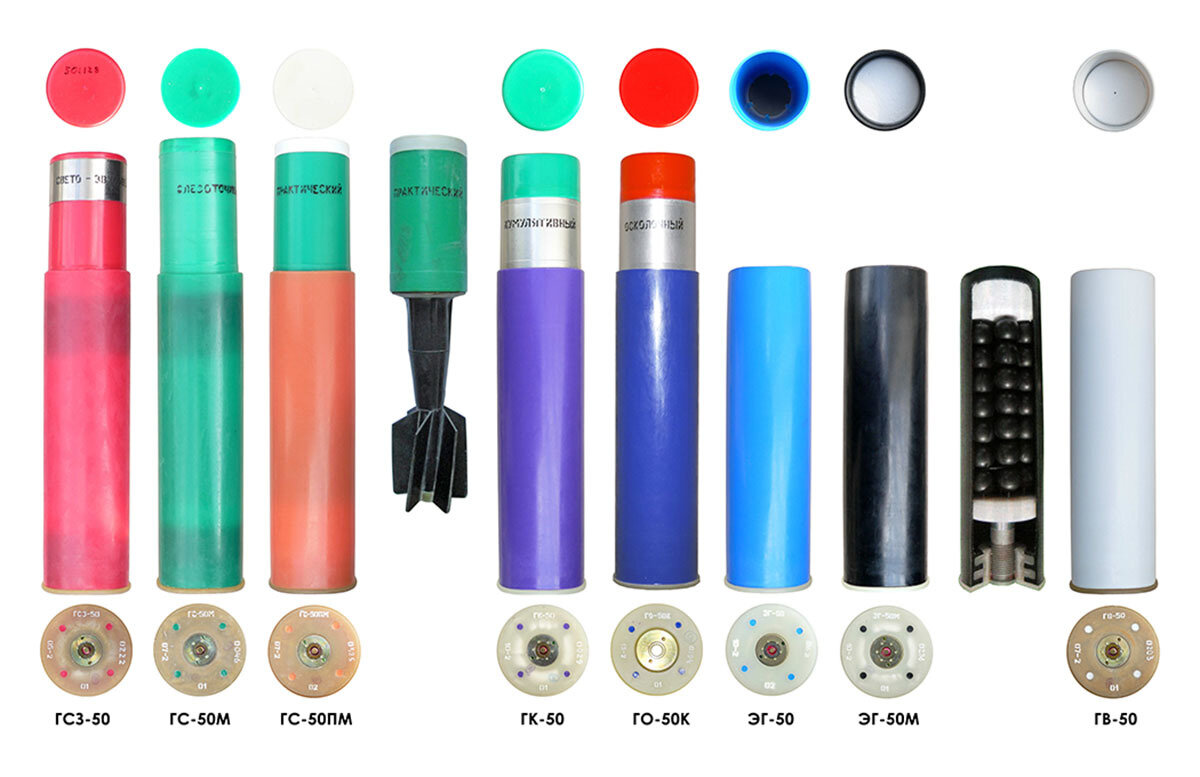 Для расширения возможностей гранатомёта к нему был разработан целый комплекс выстрелов различного назначения, в том числе специфические боеприпасы для вскрытия дверей и разбивания закалённых стекол. Со временем от первоначального варианта раздражающего выстрела с жидким раствором ХАФ конструкторы отказались в пользу модернизированного варианта ГС-50М с прессованной шашкой активного вещества. Кроме того, в начале 2010-х годов гильза выстрела вместо вышибного патрона с автоматной гильзой стала комплектоваться капсюлем-воспламенителем.