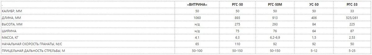 В 80-е годы, ещё до появления таких гранатомётов, как 6Г30 и ГМ-94, на вооружении спецназа КГБ СССР первыми нелетальными комплексами стали 50-мм гранатомёты «Витрина» и РГС-50 с гранатами, снаряжёнными раздражающим веществом типа «Черёмуха».
