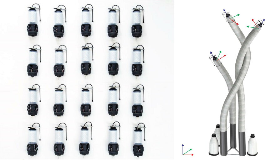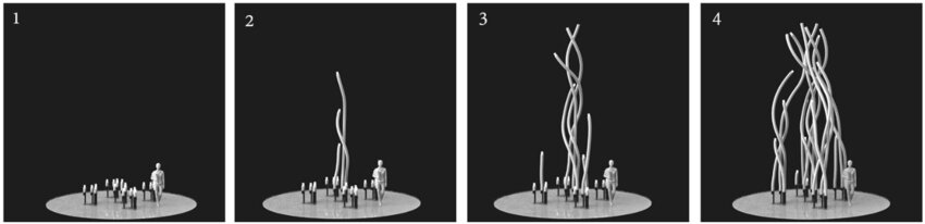 При необходимости робот может менять углы наклона основания и делать так, что создаваемая им конструкция будет поворачиваться и изгибаться в пространстве. Например, чтобы состыковаться с элементами, которые сплели другие роботы. В эксперименте исследователей МТИ композиция из плетеных стеблей из стекловолокна высотой до 4,5 м простояла на открытом воздухе семь месяцев, спокойно выдержав непростую зимнюю погоду Массачусетса.