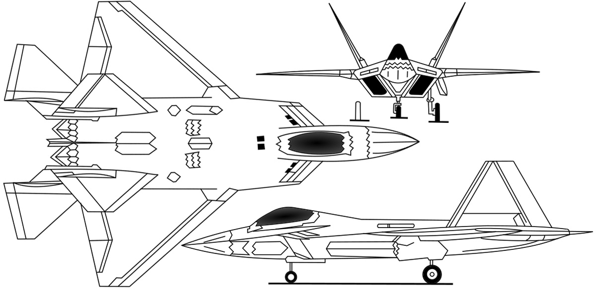 | Вооружение: | Встроенная 20-мм пушка М61А2 Vulcan c 480 патронами. 3 внутренних отсека вооружения: В режиме воздух-воздух: в главном отсеке (под фюзеляжем): 6 УР воздух-воздух AIM-120C AMRAAM. и в боковых: по 1 УР воздух-воздух AIM-9 Sidewinder В режиме воздух-земля: в главном отсеке (под фюзеляжем): 2 УР воздух-воздух AIM-120C AMRAAM и 2 управляемые 450-кг бомбы GBU-32 JDAM в боковых: по 1 УР воздух-воздух AIM-9 Sidewinder В роли самолета завоевания превосходства в воздухе: в главном отсеке (под фюзеляжем): 6 УР воздух-воздух AIM-120C AMRAAM. и в боковых: по 1 УР воздух-воздух AIM-9 Sidewinder На 4 внешних узлах 4 AIM-120C AMRAAM и 2 2271 л ПТБ В роли дальнего истребителя: в главном отсеке (под фюзеляжем): 6 УР воздух-воздух AIM-120C AMRAAM. и в боковых: по 1 УР воздух-воздух AIM-9 Sidewinder На 4 внешних узлах 8 AIM-120C AMRAAM и 4 2271 л ПТБ |