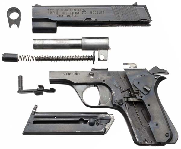 В 1958 году (по англоязычной версии в 1948 году, хотя испаноязычная версия, опирающаяся на фотографии в газетах, все же точнее) отец и сын Трехо создали семейное предприятие по выпуску пистолетов семейной же конструкции, назвав его Armas Trejo.