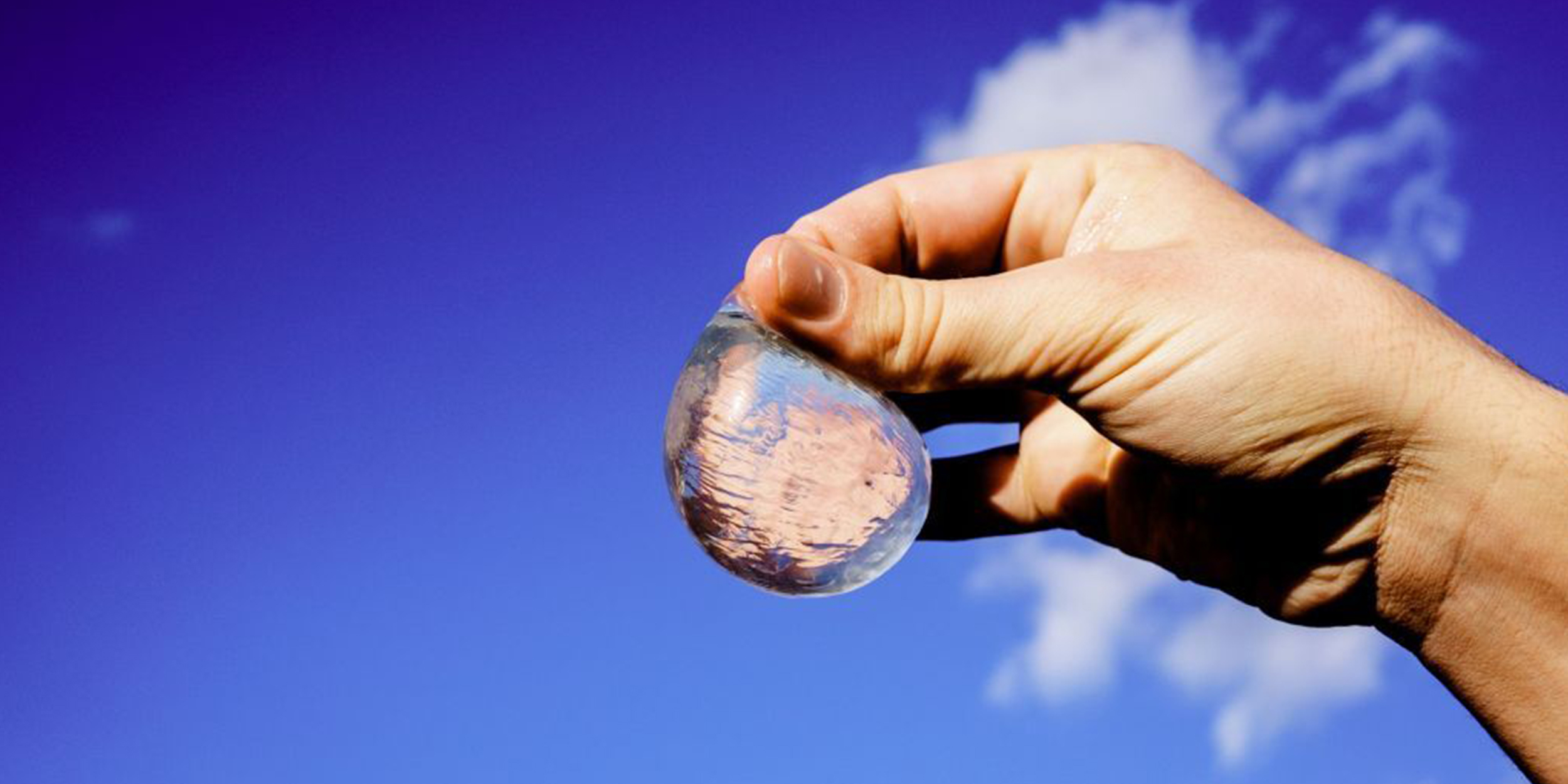 Шарики Ooho! сделаны на основе морских водорослей. Они способны к полному биоразложению и настолько натуральны, что их даже можно есть. Чтобы выпить воду, нужно прокусить упаковку.