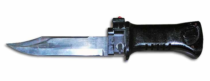 Безопасность обращения со стреляющим ножом обеспечивается неавтоматическим флажковым предохранителем. Имеется также блокировка ударно-спускового механизма, исключающая производство выстрела при незапертом стволе.