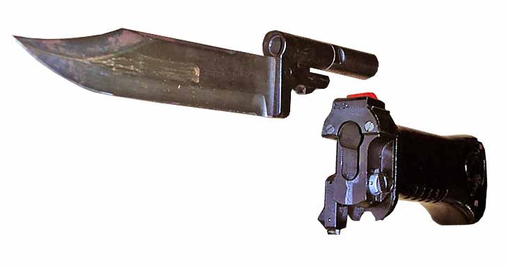В случае необходимости вместо клинка в рукоятку можно вставить пилу с крупными зубьями, предназначенную для резки дерева и предметов из неметаллических материалов. В комплект входит также топор с полукруглым лезвием, а в сумке для переноски имеется место для шила и других принадлежностей, необходимых для длительных действий в тылу противника.