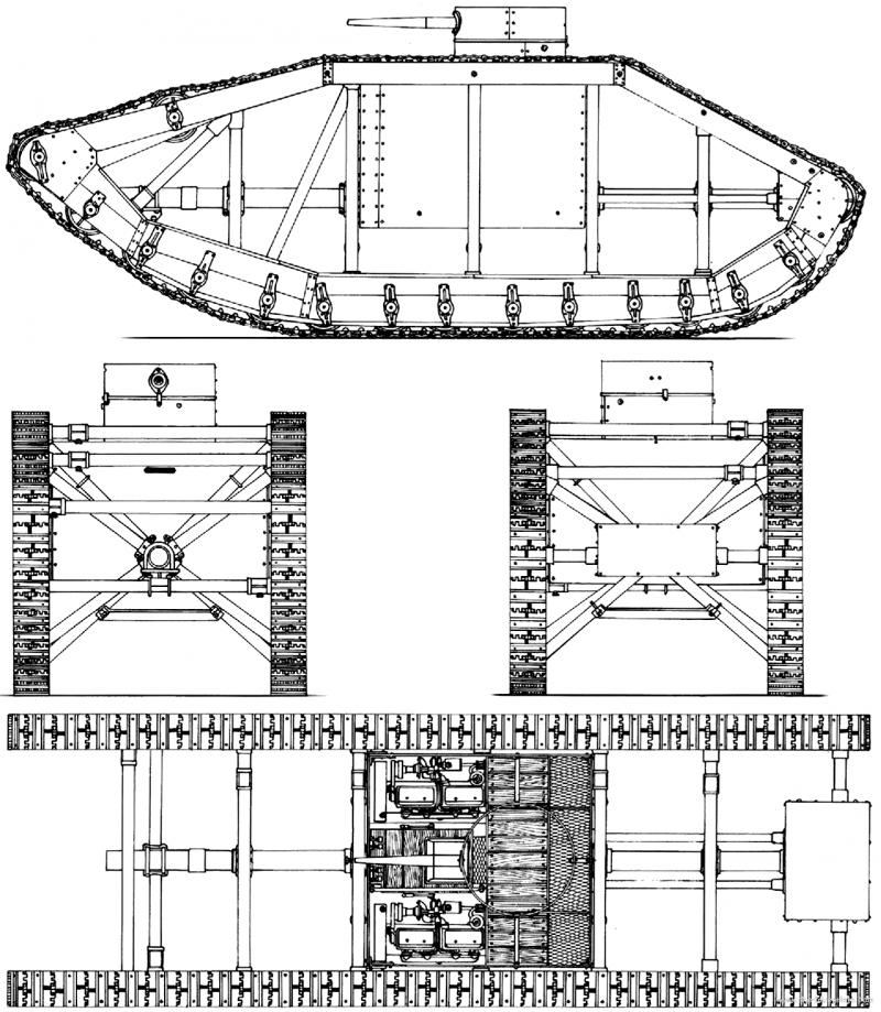 Первые танки, появившиеся на полях сражений Первой мировой, имели ромбовидную форму, с гусеницами, охватывающими корпус по кругу. Такая форма была обусловлена тем, что разработчики хотели обеспечить им максимально возможную проходимость в условиях изрытой воронками и траншеями местности. Однако подобная конструкция таила в себе и серьезные недостатки — танк получался огромных размеров, что влекло за собой увеличение массы, так как приходилось забронировать очень большой внутренний объем. Из-за этого танку требовался более мощный и прожорливый двигатель, а это еще больше увеличивало его общую массу и размеры. Получался своего рода замкнутый круг.