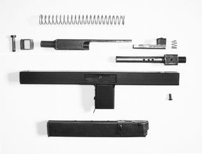 При необходимости эта «коробка» за пару секунд превращалась в небольшой, но достаточно грозный на малых дистанциях пистолет-пулемет. В 1986 году Стоунер запатентовал это оружие, и примерно к этому же времени на фирме Ares было выпущено незначительное количество (предположительно не более 8 штук) таких опытных пистолетов-пулеметов. Однако в 1986 году оружейное законодательство США было резко ужесточено в отношении продажи и выпуска автоматического оружия для частных лиц, а полиция и спецслужбы таким оружием не заинтересовались.