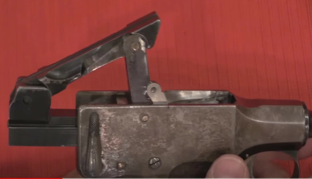 При опускании рычага назад шарнирное соединение вместе с затвором становились на место, зато из затыльника пистолета оставался торчать ударник, причем на весьма впечатляющую длину — около 2,5 см.