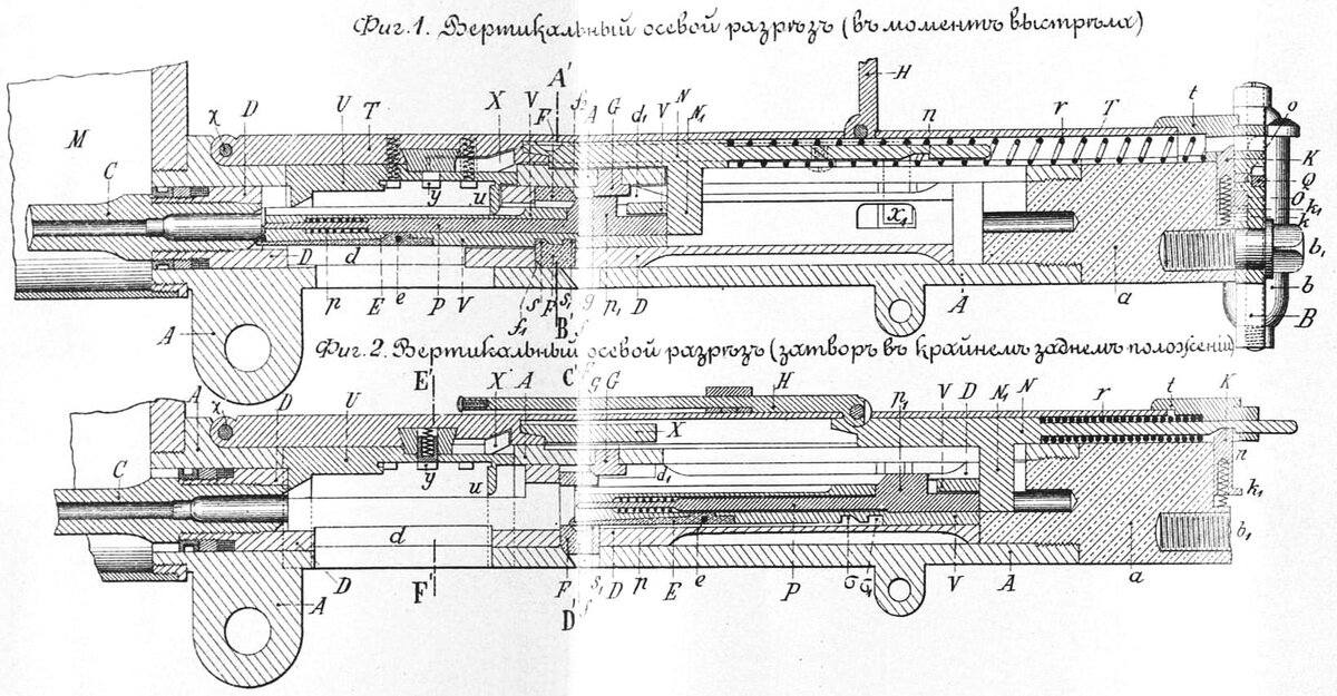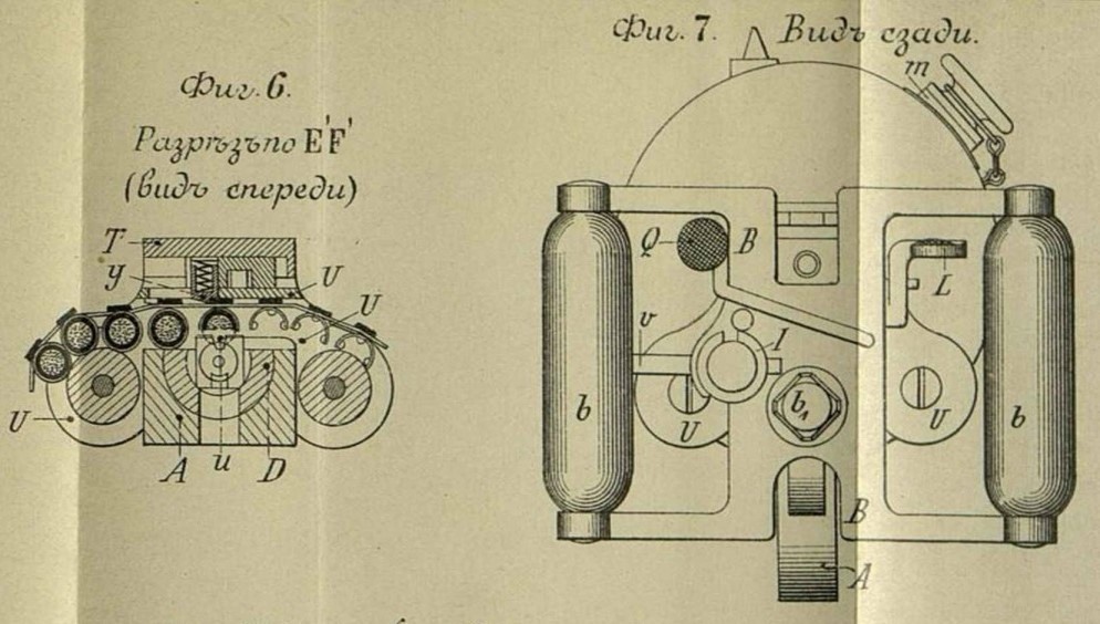 «Автоматическое функционирование механизма пулемета после выстрела происходит с необыкновенной быстротой. От момента нажатая на головку спускового крючка L до момента, когда пулемет становится готовым к новому выстрелу протекает такой короткий промежуток времени, в течение которого даже опытный и самый приспособившийся к настоящему образцу пулемета стрелок не в состоянии успеть во время освободить спусковой крючок L и тем уничтожить возможность второго выстрела без нового нажатия на головку спускового крючка. В виду этого для возможности однозарядной стрельбы пулемет снабжен еще одним спусковым крючком Q, которым пользуются исключительно для производства одиночных выстрелов из пулемета».