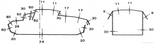 корма корпусу (верх), мм/град. 30 / 30°