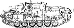 компонувальна схема класична (моторне відділення ззаду, трансмісійне спереду, бойове та управління посередині).