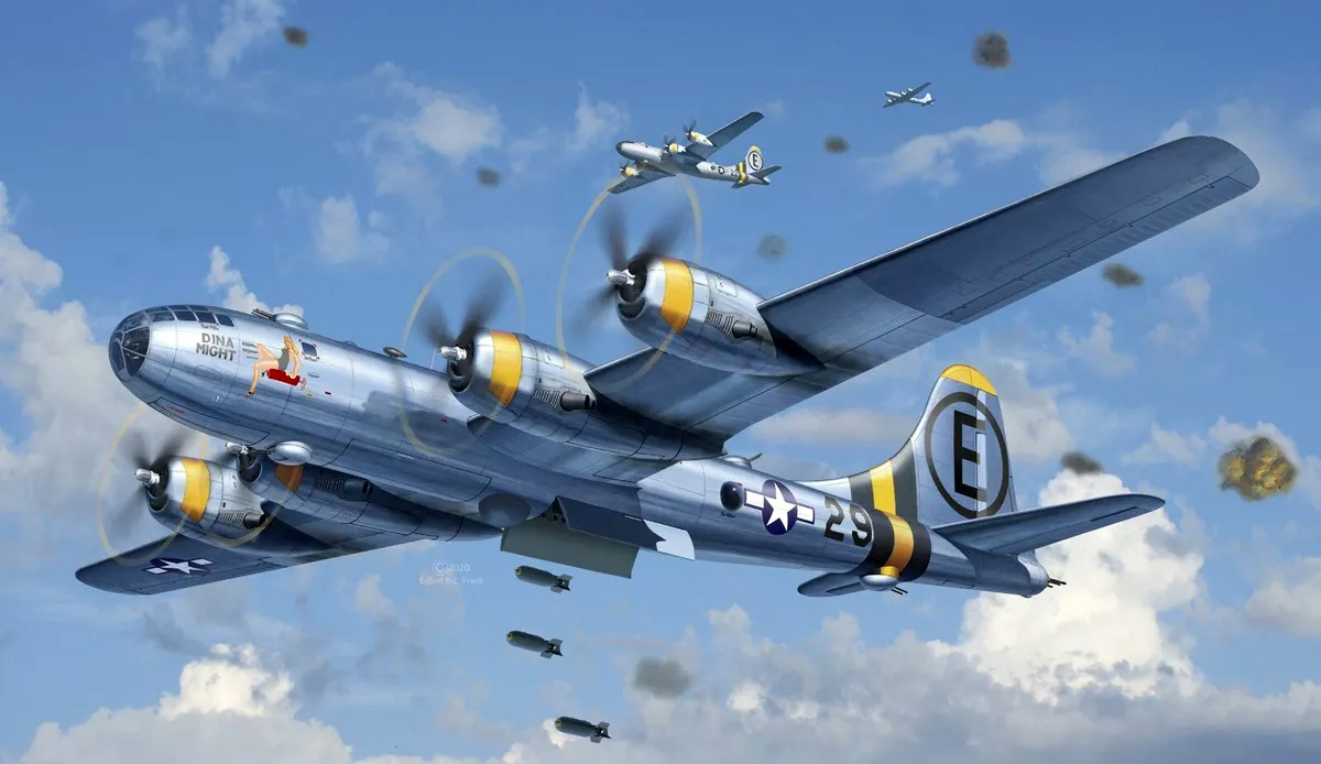 На фоне других тогдашних бомбардировщиков В-29 выглядел как пришелец из будущего, поскольку в нем воплотились все новейшие достижения авиационно-технической мысли: герметичные кабины экипажа, позволявшие с комфортом совершать длительные полеты в стратосфере, мощные и высотные 2200-сильные моторы с турбокомпрессорами, радиолокационный бомбовый прицел, сопряженный с автопилотом, позволявший точно бомбить в любое время суток и в любую погоду, дистанционно-управляемые пулеметные турели с бортовым компьютером, автоматически вносившим поправки на параллакс, направление и силу ветра.