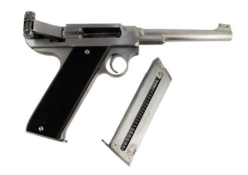 Совершенно удивительный пистолет был создан в Швейцарии, примерно в 1975 году. Начать с того, что он относился к классу «сверхтяжелых пистолетов», и предназначался для стрельбы револьверными патронами калибра .357 magnum. Такие патроны сразу нам на что намекают? На жесткие схемы запирания, причем, с хорошими рабочими сечениями запирающих механизмов. Привычное зацепление за окно ствольной коробки тут не подходит, — если сразу не вырвет, с прилетом затвора в лоб стрелку, то разболтается очень быстро. Поэтому, конструктор Филлип Золя (Philippe Sola или Philipp Sola) выбрал другой способ, — запирание по принципу мертвой точки. Да, как у пистолета Борхард-Люгер, он же знаменитый Parabellum 08. Ну а почему нет? Схема, вдобавок ко всему, позволяет получить приличный ход затвора (актуальный в силу очень длинного патрона) без чрезмерного увеличения длины ствольной коробки.