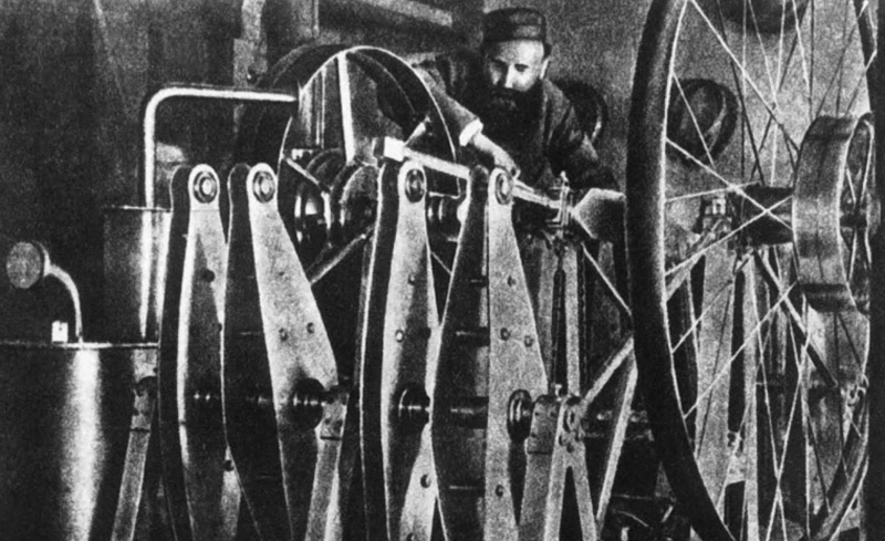 Всем известен принцип работы паровой машины — расширяющийся в цилиндре пар двигает поршень, который через кривошипно-шатунный механизм приводит в движение рабочее колесо. Огнеслав Костович подумал: а что если пар в цилиндре еще и поджечь?! Тогда КПД и мощность машины значительно возрастут. Разумеется, при этом двигатель должен работать не на воде, а на легко испаряемой горючей жидкости в смеси с воздухом.