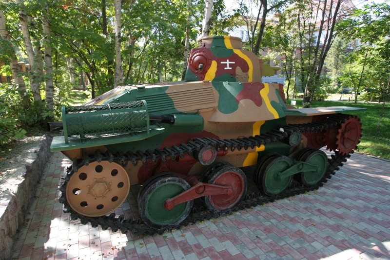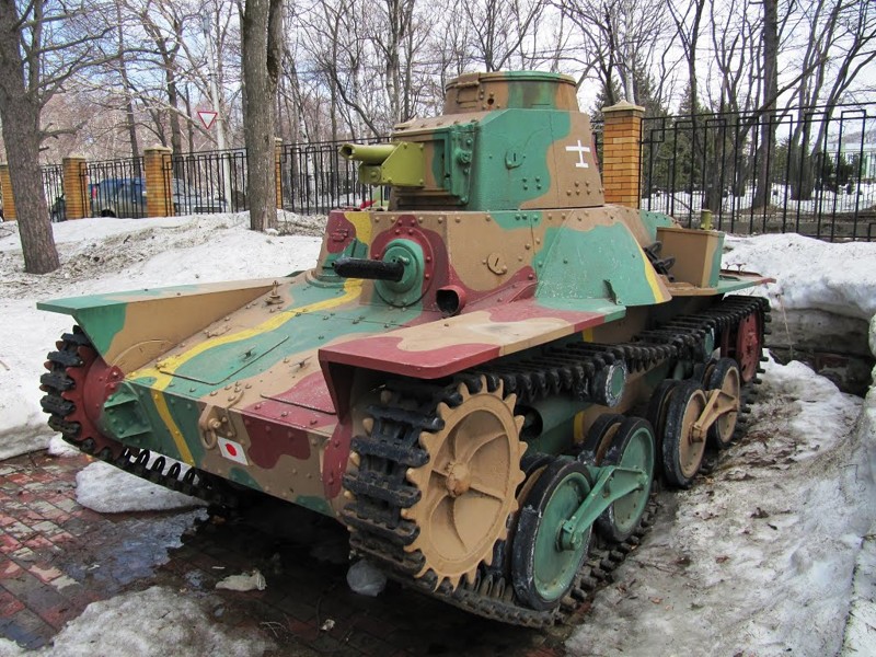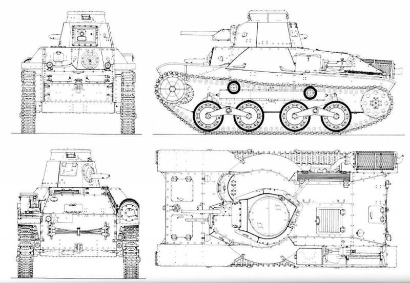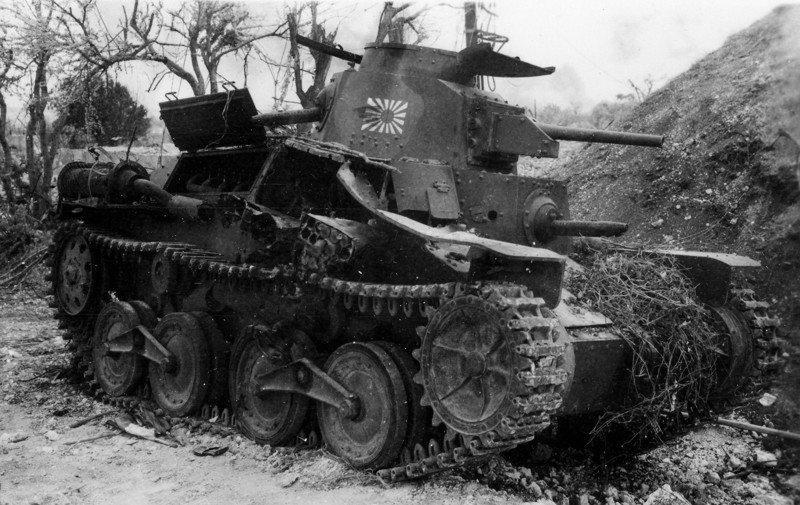 Трансмиссия и ведущие колеса смонтированы в его передней части. Танк имел корпус каркасной конструкции, катаные броневые листы соединялись с помощью болтов и заклепок. Толщина броневых листов составляла 10-12-мм. Такая броня хоть и защищала от огня стрелкового орудия, но пробивалась противотанковыми снарядами любого калибра. Танк выпускался серийно с 1936 по 1943 год. Всего было выпущено около 1300 танков этого типа, которые использовались почти во всех операциях японской армии в Китае и в бассейне Тихого океана.