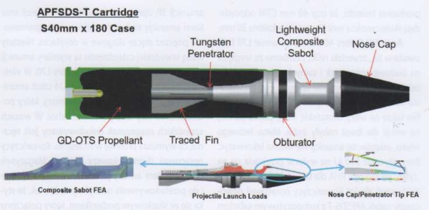 Боеприпас 40×255 мм СТАI разрабатывается с 1994 года и является «телескопическим»: снаряд полностью утоплен в гильзе. Под него разработана новая, современная и очень лёгкая (340 кг) пушка СТ40. Её скорострельность составляет 200 выстрелов в минуту, а время перехода с одного вида боеприпасов на другой — 3 секунды. Живучесть ствола составляет не менее 10 000 выстрелов. Конструкция выстрела СТАI сделала возможным применение беззвеньевой системы подачи боеприпасов. Для пушки СТ40 предлагаются три варианта системы боепитания: на 68 снарядов трёх типов либо на 42 или 70 снарядов двух типов. По сравнению с традиционными 30-мм пушками эти цифры очень малы, но, согласно заявлениям разработчиков, они вполне достаточны с учётом высокой эффективности снарядов СТАI: три таких снаряда якобы соответствуют 21 снаряду калибра 30 мм. Дульная энергия составляет 500 кДж, бронепробиваемость — 140-160 мм, масса взрывчатого вещества в осколочно-фугасном снаряде — 110 г.