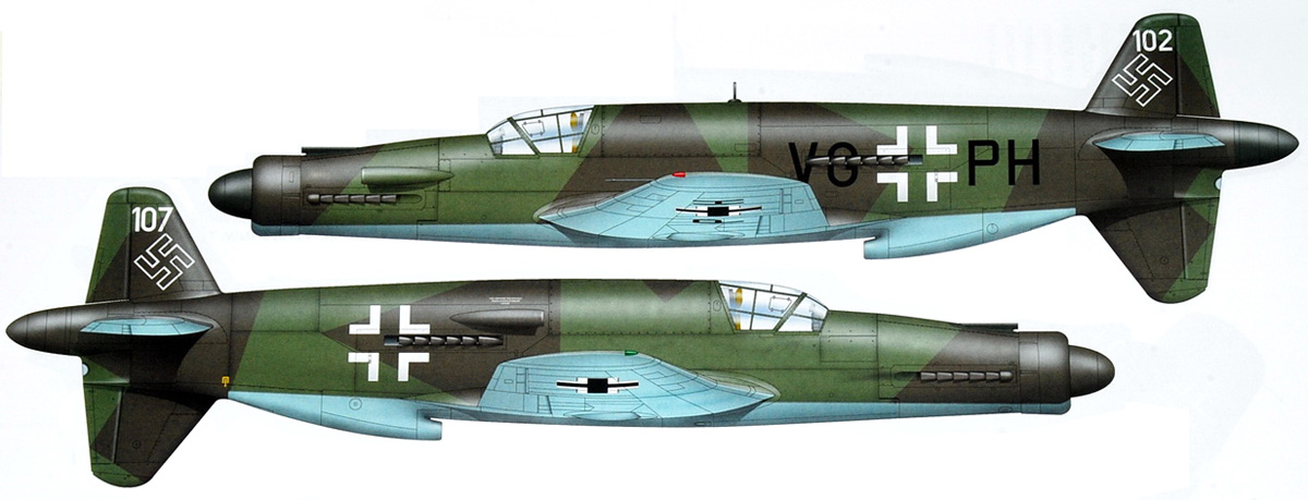 Однако до конца войны уникальный истребитель был построен всего в 13 экземплярах (11 — одноместных и два — двухместных, учебно-тренировочных) и не одержал ни одной подтвержденной воздушной победы. Еще 24 экземпляра остались недоделанными и были захвачены союзниками в заводских цехах.