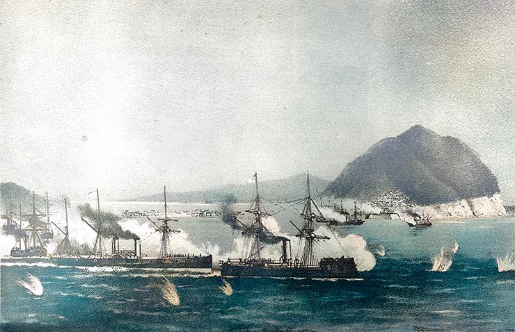 История первого броненосца японского флота берет свое начало в 1863 году, когда во французском городе Бордо на верфи «Арман Фрерэ» были заложены по заказу Египта два броненосца под названиями «Хеопс» и «Сфинкс». Однако египтян использовали лишь как прикрытие — настоящим заказчиком являлось правительство Конфедеративных Штатов Америки. Напомним, в самом разгаре шла Гражданская война в США и южане, не имевшие достаточно развитой промышленности, но отчаянно нуждавшиеся в различном вооружении и снаряжении для ведения боевых действий, пытались закупать в Европе великое множество всего, включая боевые корабли.