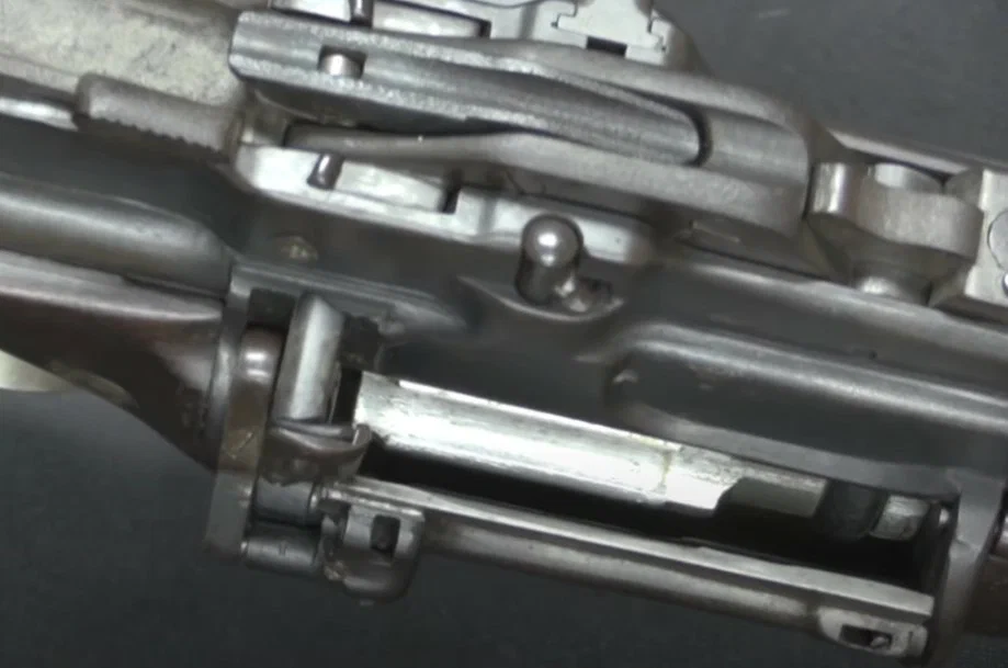 Сложный механизм, сам по себе массивный, был заключен в не менее массивную ствольную коробку, как и положено в таких системах, открытую сверху «всем ветрам». И, не надо быть знатоком окопной жизни, чтобы предположить, что все это нагромождение соприкасающихся и тщательно подогнанных деталей очень плохо переносило пыль и грязь.