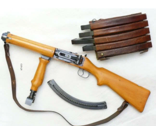 Оружие находилось на хранении до 1962 года, потом было объявлено устаревшим. 69 единиц было уничтожено. Совершенно случайно сохранилось несколько штук (один (под номером 1) хранится в английском Лидсе (верхние фото), еще один (последнее фото) в музее замка Морж в Лозанне). Любопытный нюанс: на «английском» пистолете-пулемете (№1) переводчик режима огня отсутствует.