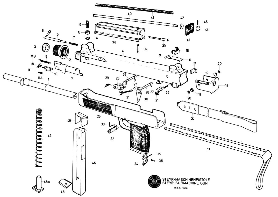 В самом общем смысле оружие действительно очень напоминало израильский пистолет-пулемет: характерная схема, при которой приемник магазина находился в пистолетной рукояти, а затвор в переднем положении частично «набегал» на ствол, которая использовалась Узиэлем Галем, была использована и Хуго Штовассером.
