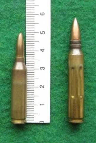 Патрон 4,6х36 мм СЕТМЕ (слева) и патрон 5,56х45 мм НАТО (справа).