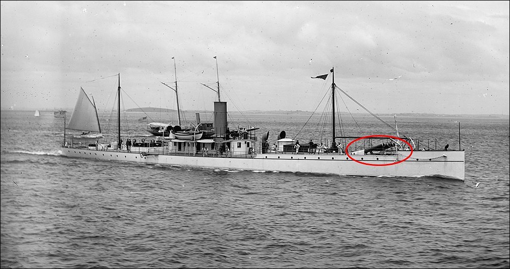 Они были сняты и заменены торпедными аппаратами. Позже корабль испытал унижение, едва не затонув, когда одна из его торпед, после выстрела, повернула назад и врезалась в корпус.