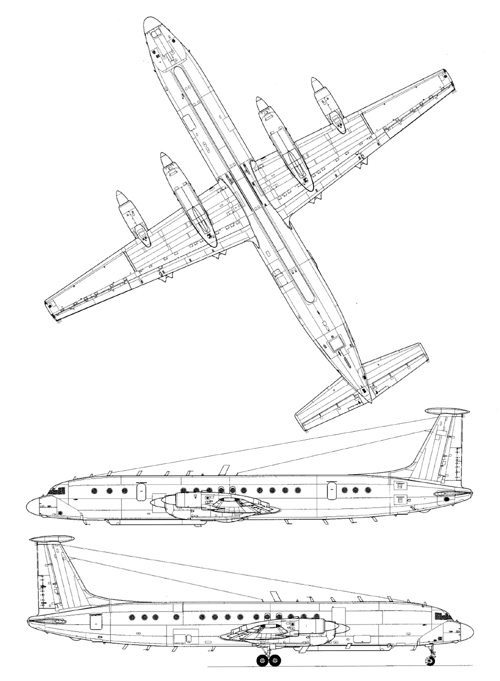 Собственно, требование большой продолжительности полета автоматически ограничивало выбор лишь самолетами с ТВД (новый Ил-62 еще не был достаточно освоен, да и требования к аэродрому для него были выше), из которых реальными претендентами оставались Ил-18 и Аи-10. Аи-12. столь широко распространенный в ВВС. из-за отсутствия гермокабины не мог обеспечить уровень комфорта, необходимый для длительной напряженной работы командующего, его штаба и операторов бортовых систем. Неплохим выбором мог стать Ан-10. преимущественно из-за некоторой унификации с Аи-12. однако Ил-18 (уже эксплуатировавшийся в ВВС и гораздо шире распространенный в Аэрофлоте, чем «Ан») обладал большей дальностью полета и, как оказалось позже, не имел тех конструктивных дефектов, которые практически поставили точку в карьере Ан-10 в мае 1972 г. Кроме того, завод в Воронеже, выпускавший Ан-10, перешел на производство новой техники (Ту-128 и Ту-144). и изготавливать Ан-10 (или гермовариант Ан-12) можно было лишь в Ташкенте. Последний, в свою очередь, продолжая выпуск Ан-12. готовился к производству Ан-22, и еще один новый самолет мог создать ненужные осложнения. Одним словом. Ил-18 подходил для новой «профессии» лучше других машин почти по всем параметрам. Для адаптации и доработки Ил-18 выбрали не «родное» для него КБ Ильюшина, а только что образованный (постановлением СМ СССР от 14.06.66) Экспериментальный Машиностроительный Завод (ЭМЗ) под руководством В. М. Мясищева. Решение было обусловлено большой загруженностью КБ Ильюшина работами по созданию Ил-76 и доводке Ил-62 и Ил-38. В то же время ЭМЗ занимался проектированием М-18 (превратившегося позже в Ту-160). но не имел текущей конструкторской темы.