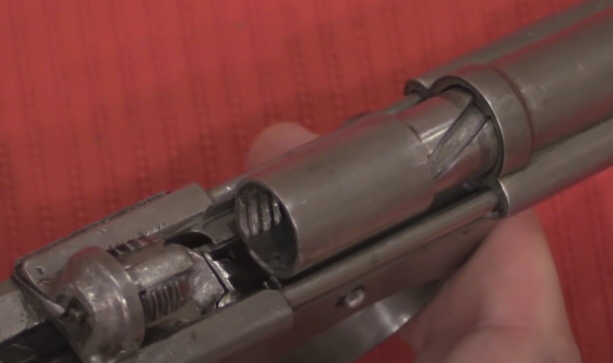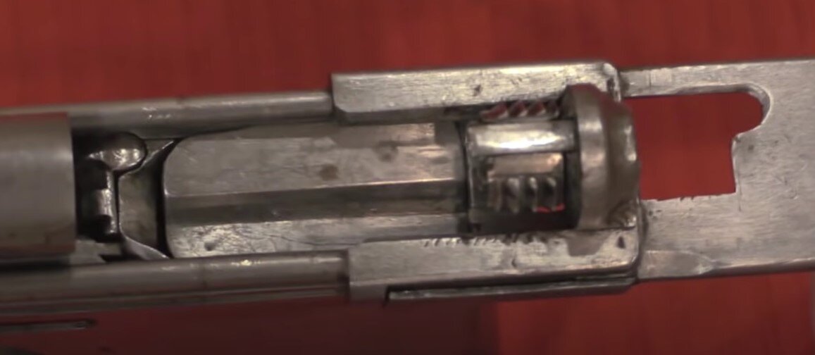 Во-вторых, собственно затвор был соединен с пластиной, которая сверху закрывала рукоять и препятствовала подаче патронов из магазина.